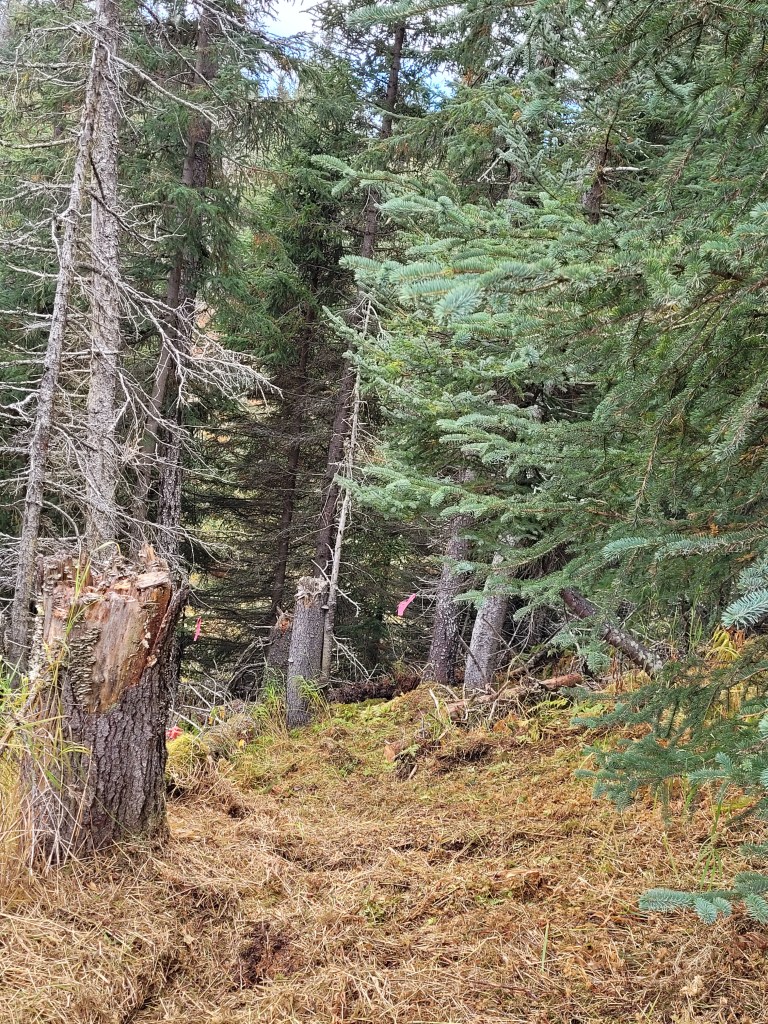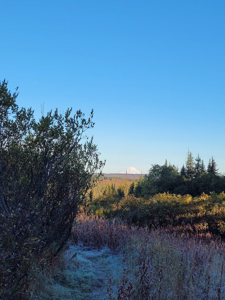 The first thought I found this morning was, “the cranberries are going to be delicious”. The frost covered the grass and twinkled with a shimmer. I’ve got some work today on the preserve and I’m eager to get at it. I’ll be working on a rerout that will add a couple switchbacks to the descending and ascending trail. But before that, pancakes. Cinnamon nutmeg vanilla pancakes actually. I wanted a festive welcoming to accompany the frost. They were delicious. I ate four. While cleaning up breakfast I decided to go ahead and create some room in the cabin for a new indoor endeavor. We’ll see what happens. Until then it’s trail time 😀 I get the appropriate gear and dive head first into it. It sure was nice to get some miles in and enjoy the crisp, clean air. I also found some late season nagoon berries that I munched on. Not to mention the scenery was breathtaking. The trail itself is a little sloppy, but it’ll only get better. Hopefully it’ll make the ups and downs a little more enjoyable for the guests.